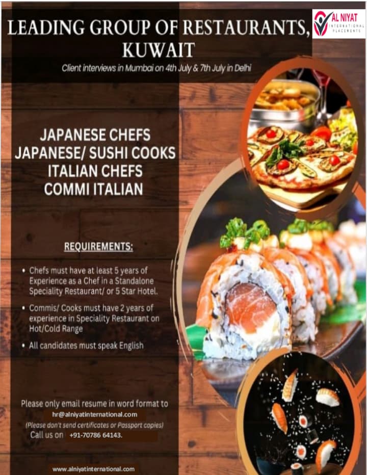 Alniyat is an Indian Recruitment Agency with 31 years of experience in recruiting chefs and hospitality professionals for Gulf countries. They prioritize international recruitment and training, provide experienced employees to meet customer needs, and have established partnerships with major companies. They aim to provide excellent service to build strong connections and become the best recruitment agency in the Gulf.